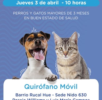 La Municipalidad de Puerto Madryn informa a la comunidad que el próximo jueves 3 de abril a las 10 horas se llevará a cabo una campaña gratuita de aplicación de antirrábico y desparasitario destinada a perros y gatos mayores de 3 meses que se encuentren en buen estado de salud. La jornada se desarrollará a través del Quirófano Móvil, que estará ubicado en el Barrio Rucal Hue, en la Sede Nido 630, en la intersección de Pasaje Williams y Luis María Campos. En esta ocasión, se dispondrá de un cupo limitado de 40 aplicaciones, por lo que se recomienda a los vecinos y vecinas asistir con puntualidad. Esta acción forma parte de las políticas de salud pública y tenencia responsable impulsadas por el municipio.